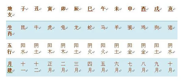 因?yàn)槲覈鴼v史非常悠久,所以歷法混亂,有周歷、夏歷和殷歷同時(shí)并存。一直被我們沿用至今的是夏歷,十二地支一般都以夏歷的寅月(正月)作為一年的開始。這是月份和地支還有生肖與五行的對照表。如下圖: